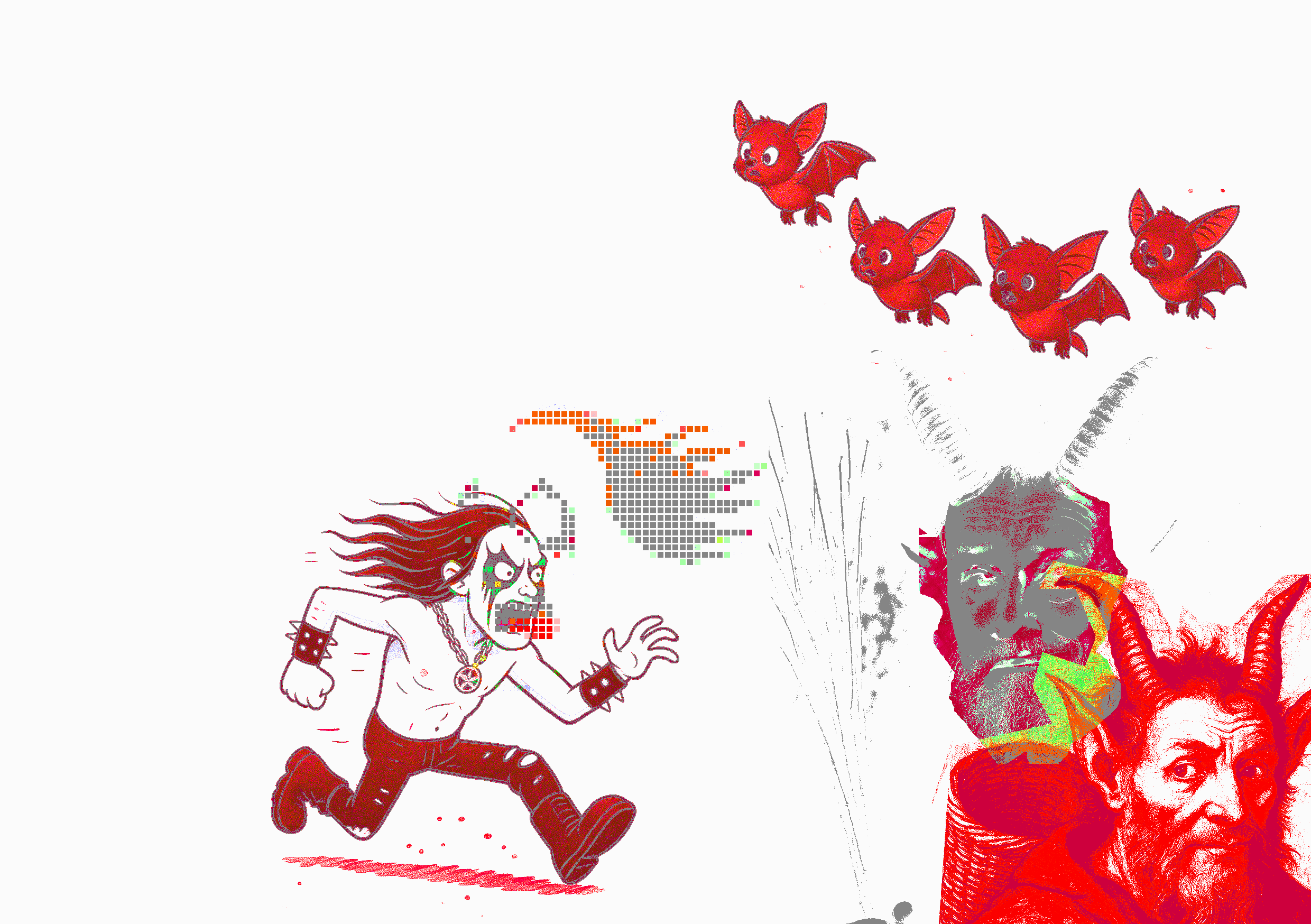 Im kulturellen Satanismus, wie ihn Black Sabbath vermarktet hat, taucht das Tier immer wieder auf: als Dämon, als Sündenbock, als Opfer. Satan wird zum Tier gemacht – beides weiterhin als Wechselspiel der Verachtung, die zur dominierten „Macht des Bösen“ verdreht wird, das Tier wird zum komplizenhaften verwertbaren Bösen, das Böse zum Fremden – und das Fremde zum Ziel. Es ist ein alter banaler Zaubertrick. Der Mensch nennt sich moralisch, indem er das Tier dämonisiert, und hier der Twist hin-und-her zwischen irgendwelchen sinnlosen Polen, die zu einer sinnlosen Machtausübung nützlich scheinen. Und wer sich dann öffentlich über das Tier erhebt – es tötet, es verspottet, es schlachtet in Bild und Tat – wird zum Helden eines Narrativs, das sich als Anti-Erzählung tarnt, aber nichts anderes ist, als die alte Geschichte vom guten Recht der Stärkeren, von der Macht des Überlebens, das zerstört.